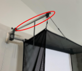 12. Use the 2 ball bungee cords and loop through the d-ring on the small arm and the grommet at the bottom of the screen. This keeps your screen tight for use.